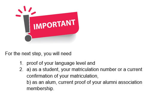 1. If you have results from a placement test OR an officially recognized language certificate or language course certificate (each no older than two years), please upload them as a PDF (all documents in one file).
